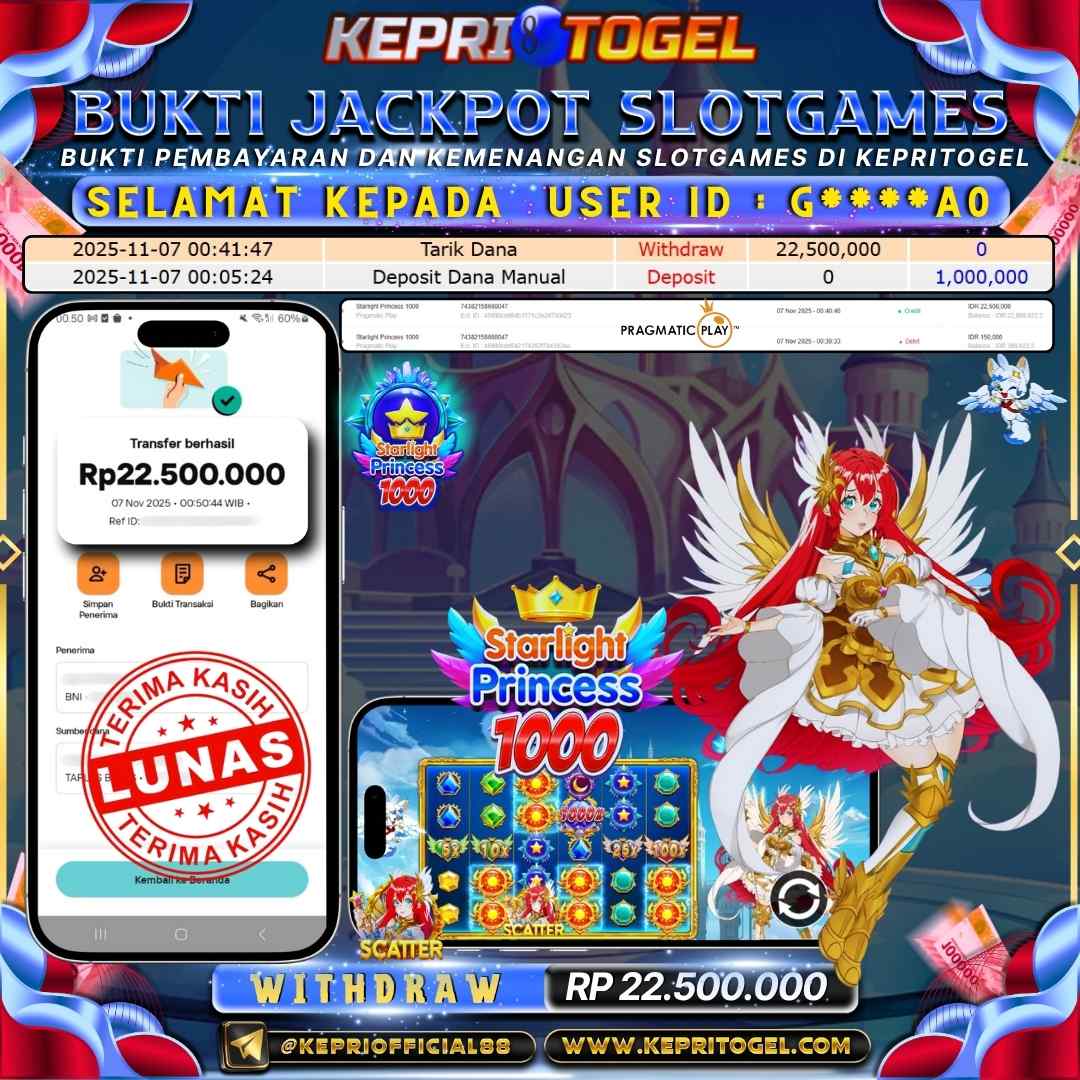 Kepritogel Jackpot Slot Starlight Princess 1000 Rp22,500,000