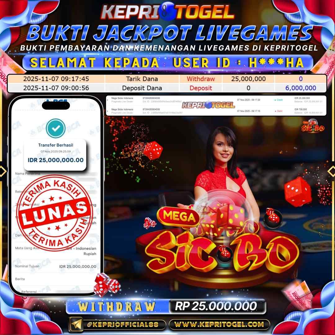 Kepritogel Jackpot Live Game Mega Sic Bo Rp25,000,000