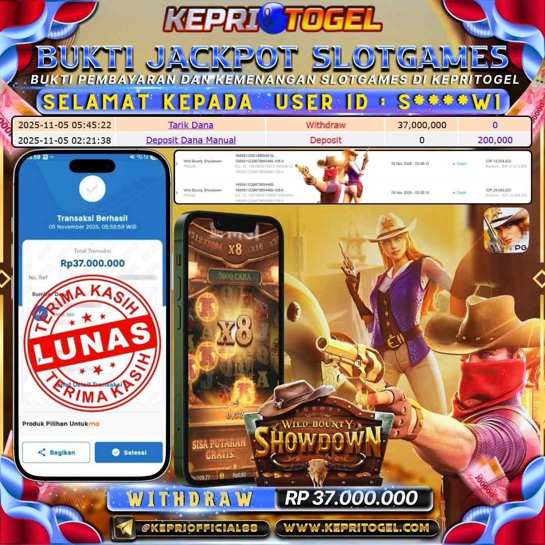 Kepritogel Jackpot Slot Wild Bounty Showdown Rp37,000,000