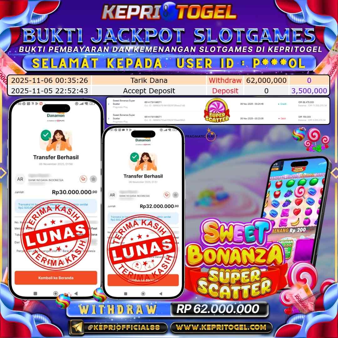 Kepritogel Jackpot Slot Sweet Bonanza Super Scatter Rp62,000,000