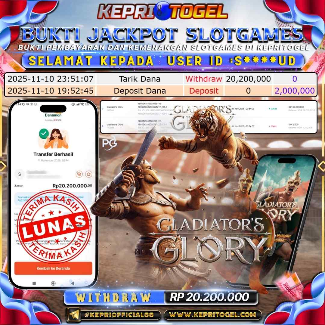 Kepritogel Jackpot Slot Gladiator's Glory Rp20,200,000