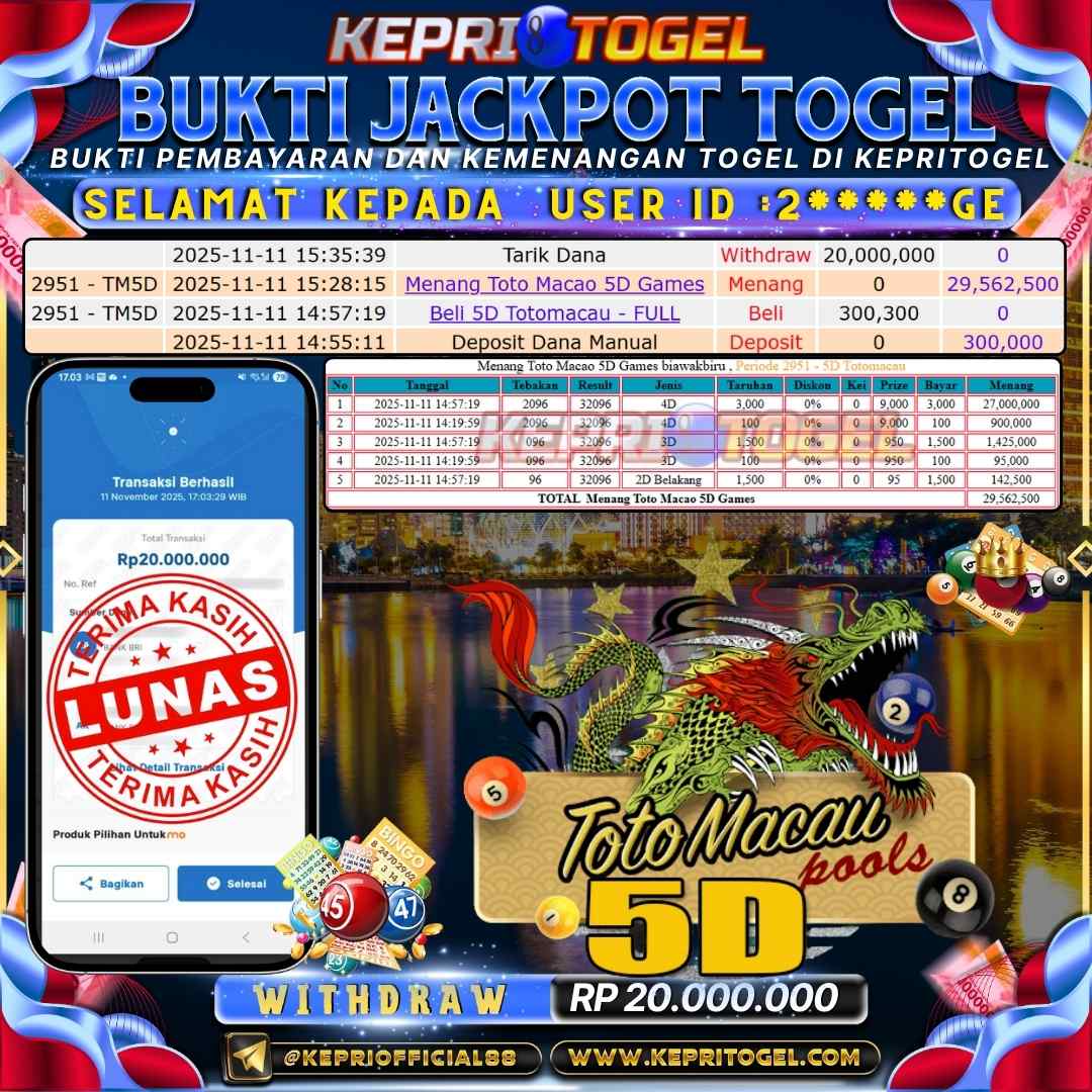 Kepritogel Jackpot Togel Toto Macau 5D Rp20,000,000