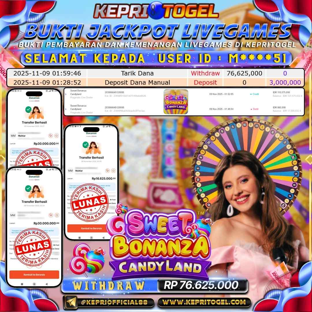Kepritogel Jackpot Live Game Sweet Bonanza Candyland Rp76,625,000