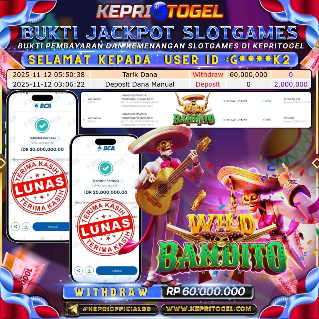 Kepritogel Jackpot Slot Wild Bandito Rp60,000,000