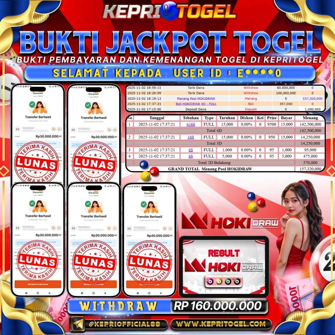 Kepritogel Jackpot Togel Hoki Draw Rp160,000,000