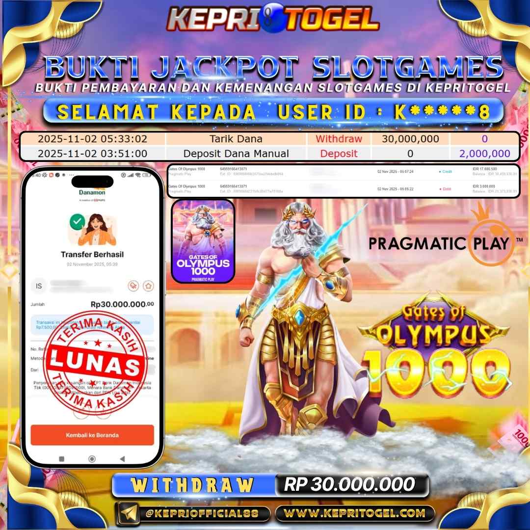 Kepritogel Jackpot Slot Gates Of Olympus 1000 Rp30,000,000
