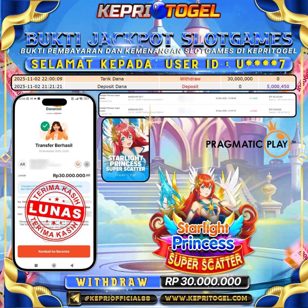 Kepritogel Jackpot Slot Starlight Princess Super Scater Rp30,000,000