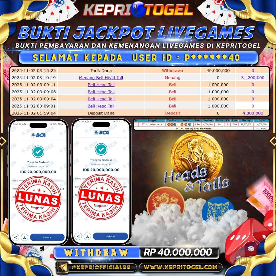 Kepritogel Jackpot Live Game head Tail Rp40,000,000