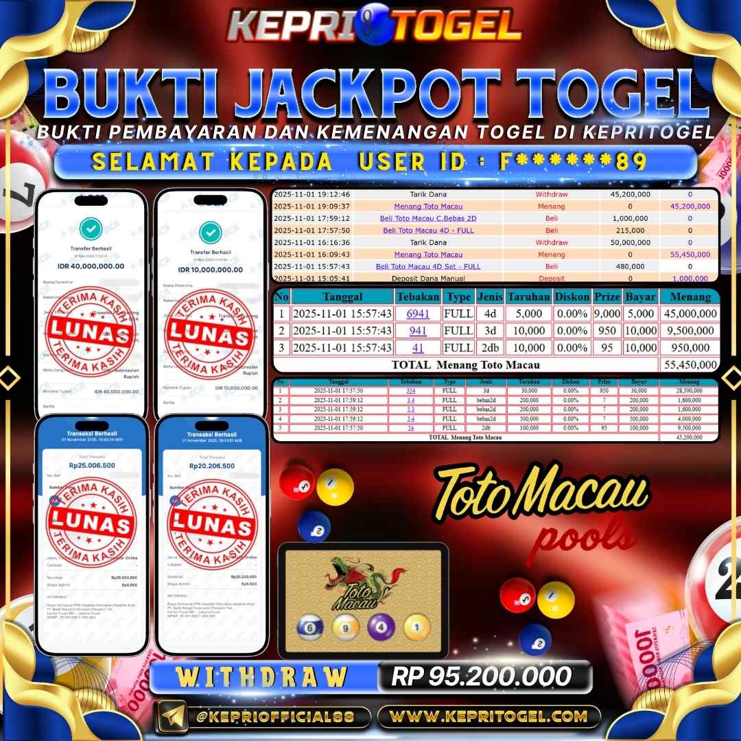Kepritogel Jackpot Togel Toto Macau Pools Rp95,200,000