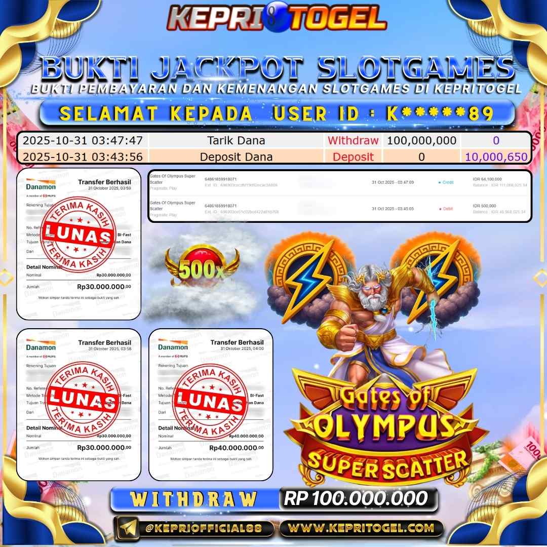 Kepritogel Jackpot Slot Gates Of Olympus Super Scater Rp100,000,000
