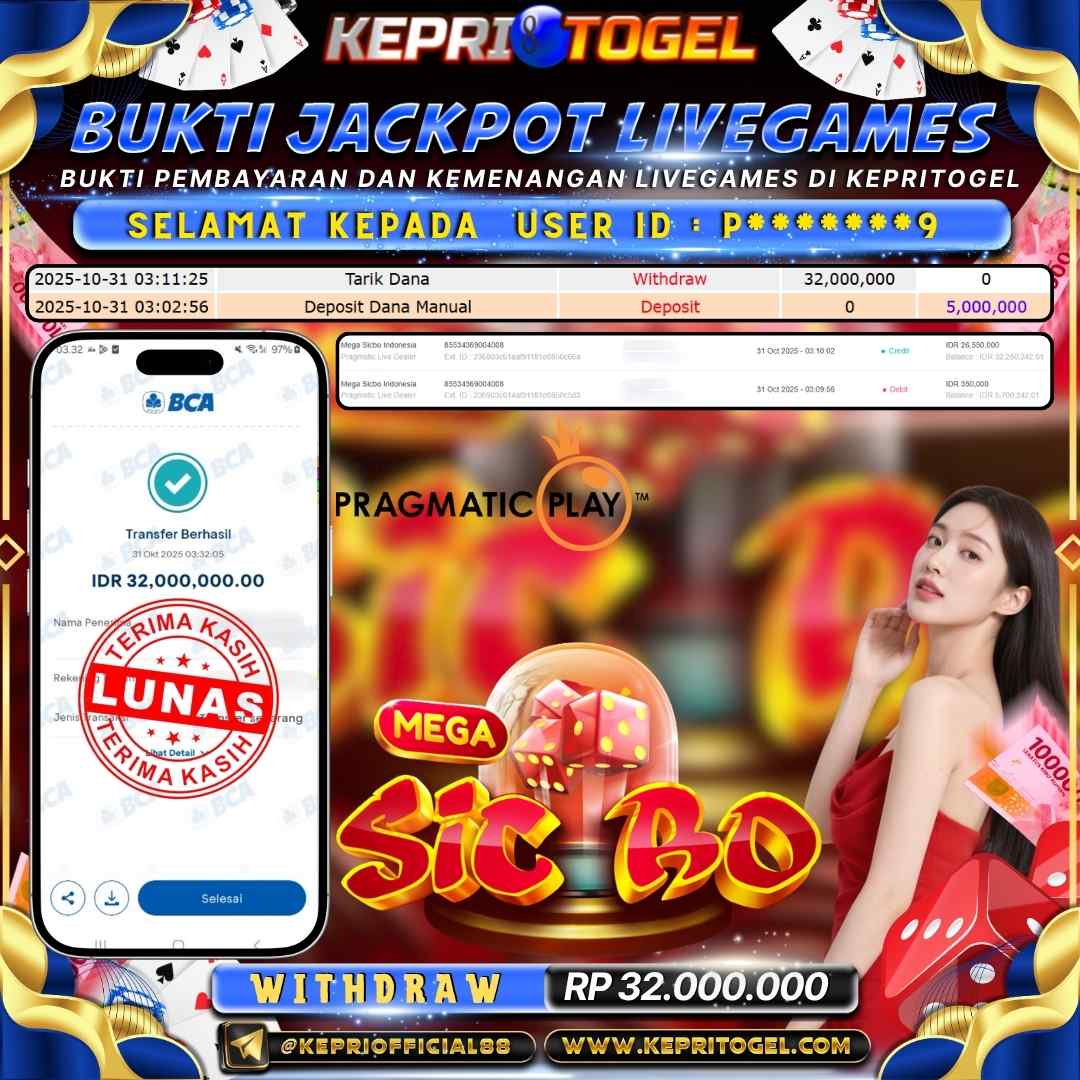 kepritogel Jackpot Live Game Mega Sicbo Rp32,000,000