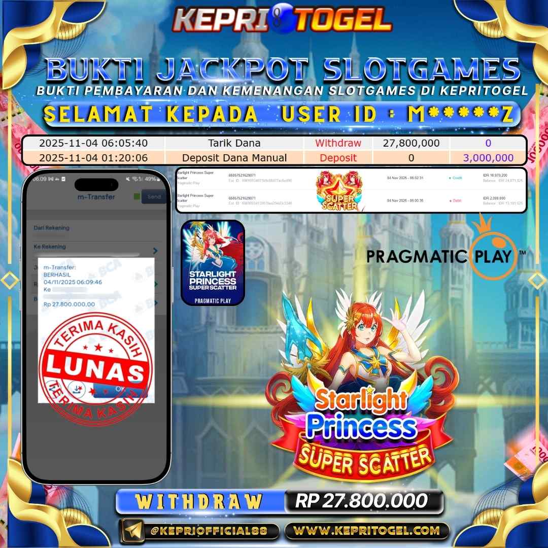Kepritogel Jackpot Slot Starlight Princess Super Scater Rp27,800,000