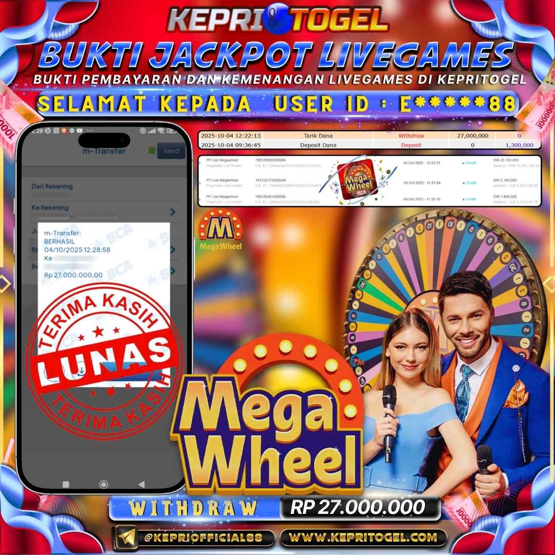 Kepritogel Jackpot Live Game Mega Wheel Rp27,000,000