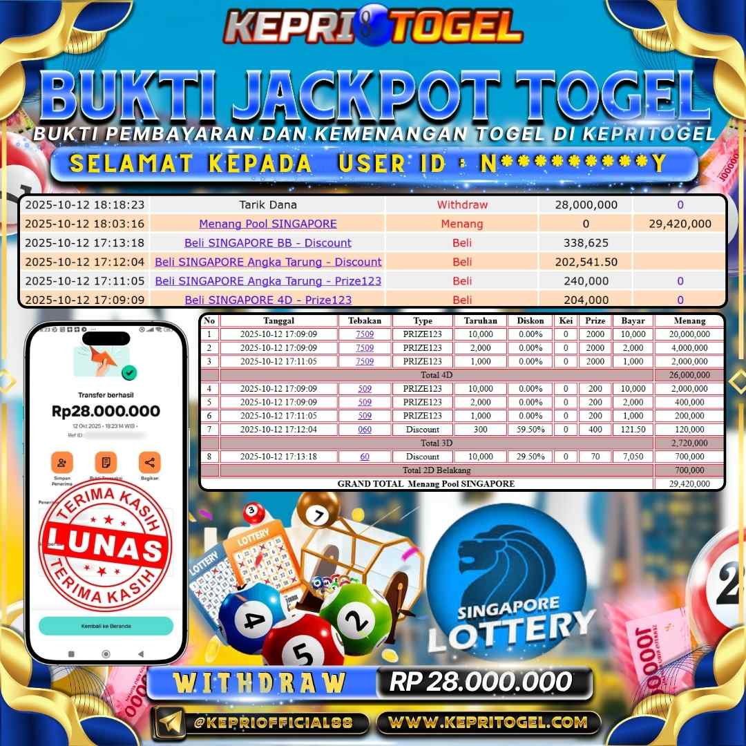 Kepritogel Jackpot Togel Singapore Rp28,000,000