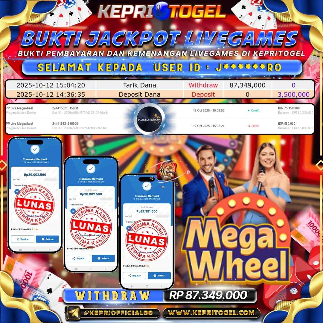 Kepritogel Jackpot Live Game Mega Wheel Rp87,349,000