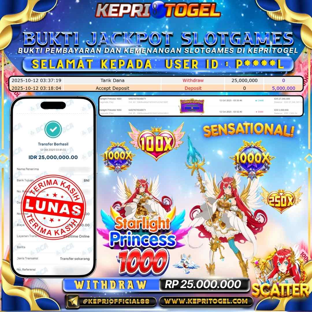 Kepritogel Jackpot Slot Starlight Princess 1000 Rp25,000,000