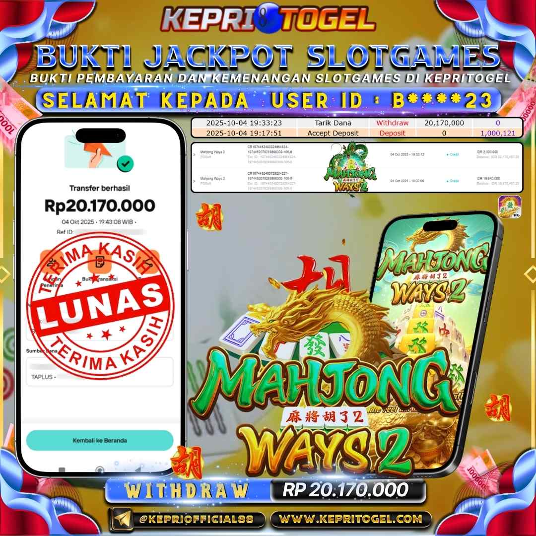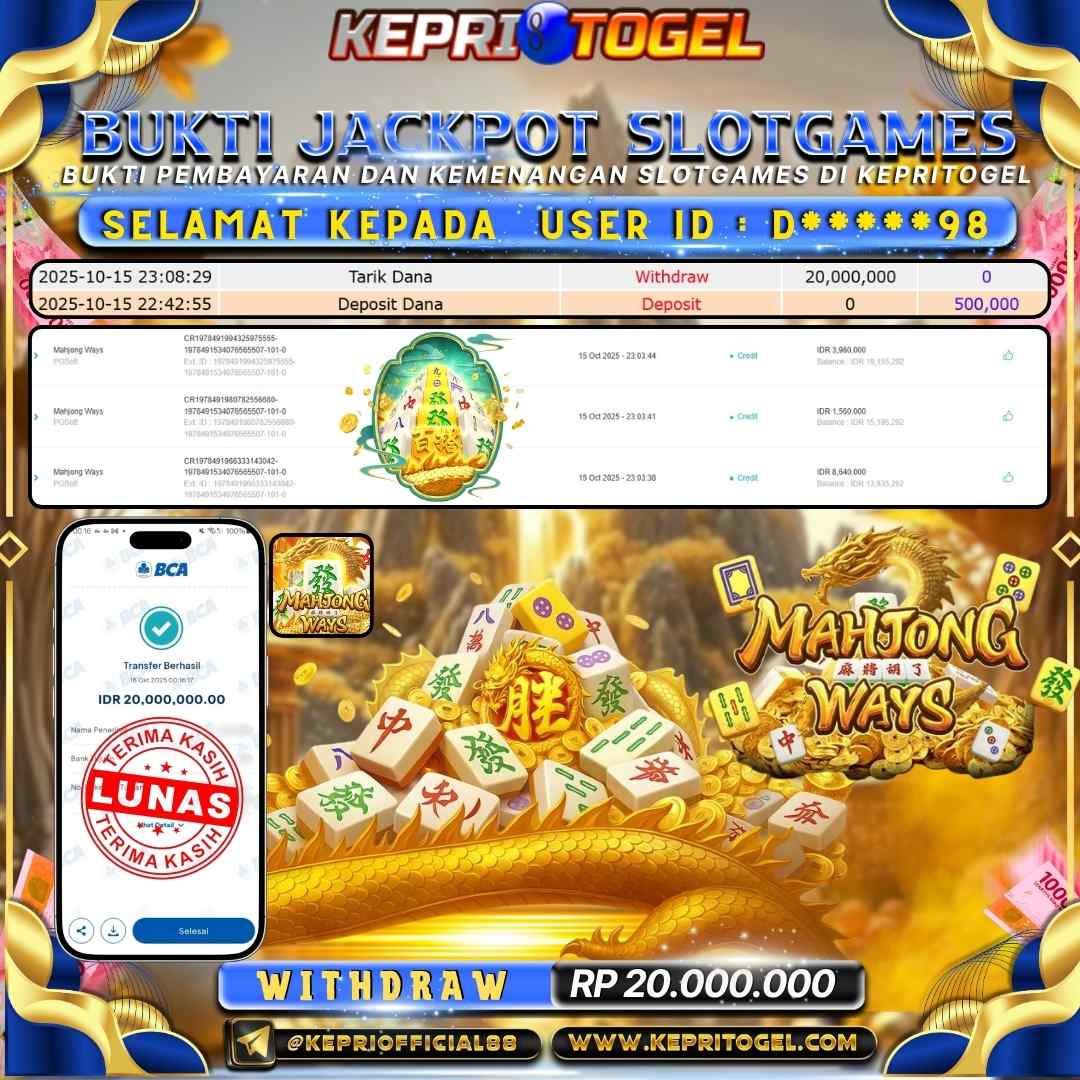 Kepritogel Jackpot Slot Mahjong Ways Rp20,000,000