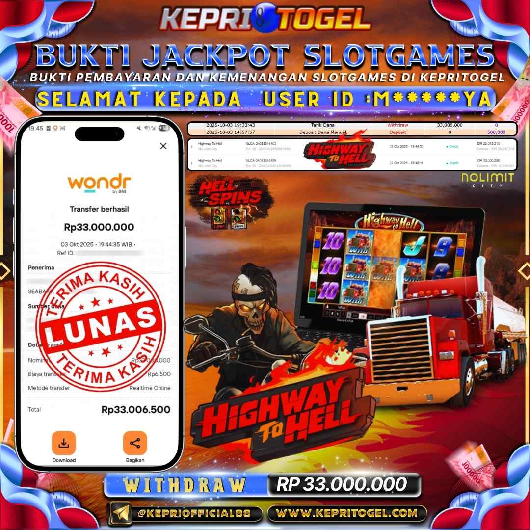 Kepritogel Jackpot Slot Highway to Hell Rp33,000,000