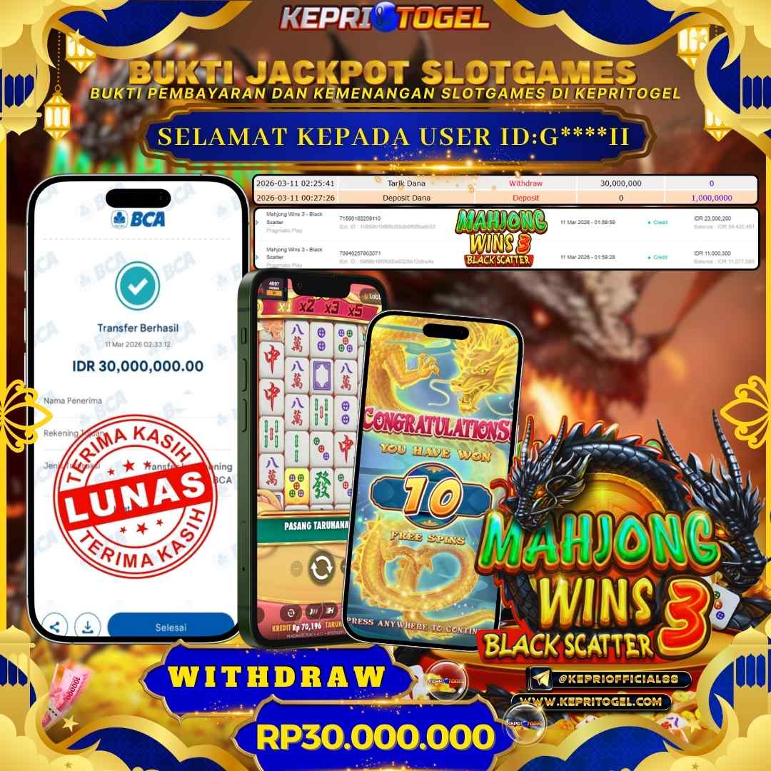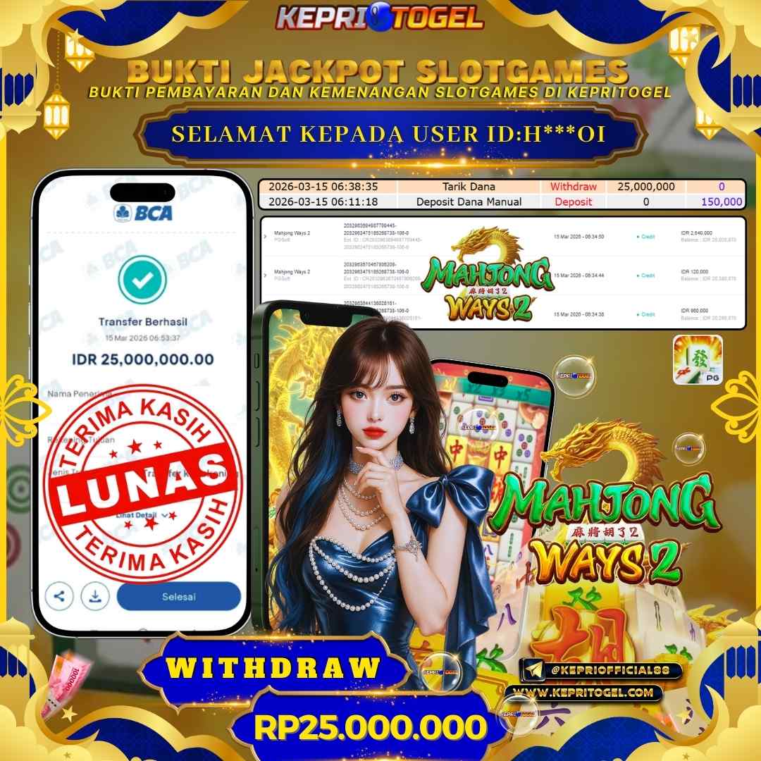 Selamat kepada UserId M******K telah berhasil mendapatkan kemenangan jackpot pada permainan slot Mahjong Wins 2 Kepritogel sebesar Rp45,000,000,- . Kepritogel situs terpercaya sejak dulu hingga saat ini , Untuk kemenangan berapapun pasti akan kami bayarkan . Jangan ragu bermain di Kepri Togel . Kami pihak Kepritogel Menyampaikan terima kasih kepada seluruh member Kepri Togel yang telah Percaya dan setia Bersama kami bermain di Kepritogel hingga saat ini.