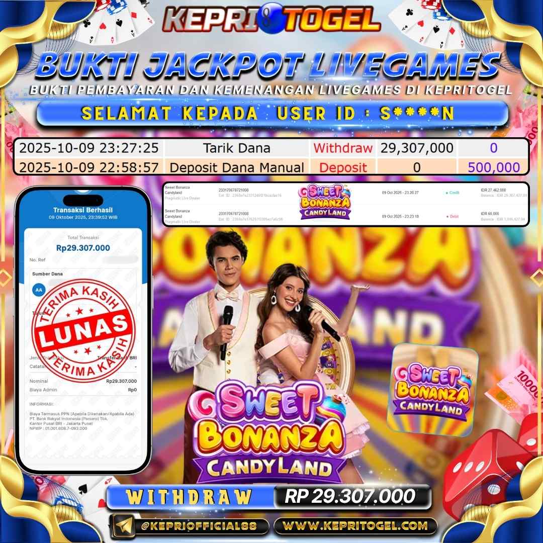 Kepritogel Jackpot Live Sweet Bonanza Candyland Rp29,307,000
