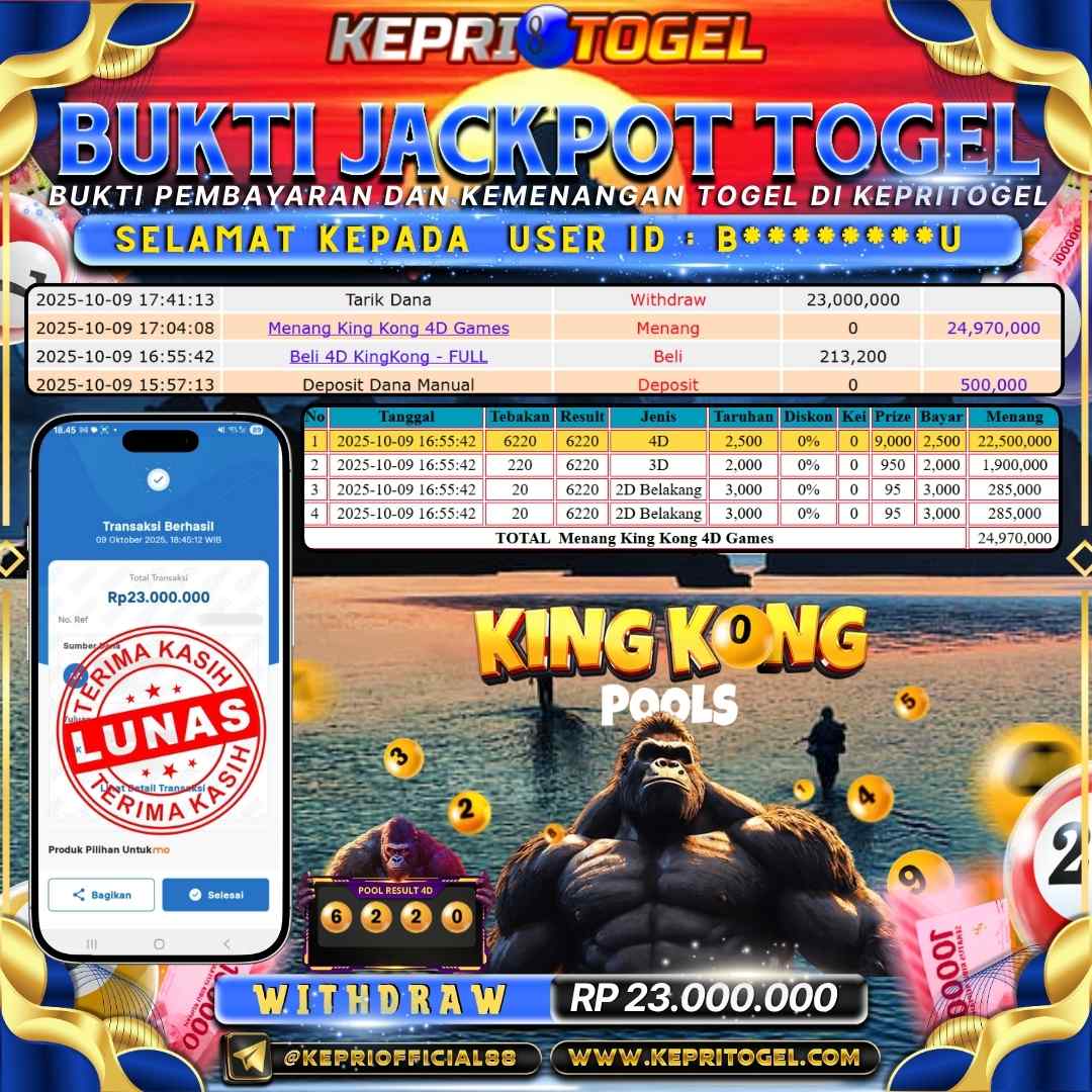 Kepritogel Jackpot Togel king kong 4D Rp23,000,000