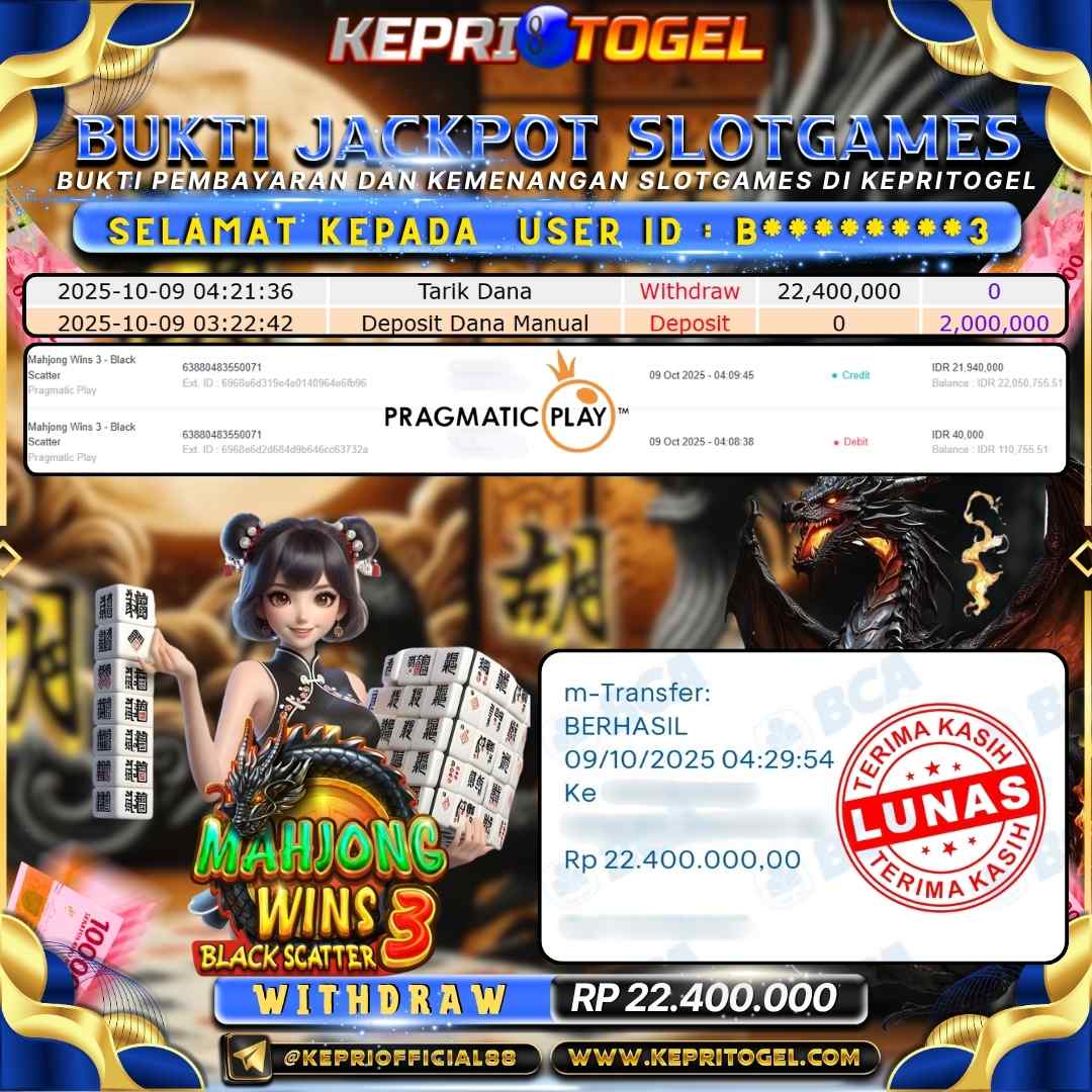 Kepritogel Jackpot Slot Mahjong Wins 3 Black Scater Rp22,400,000