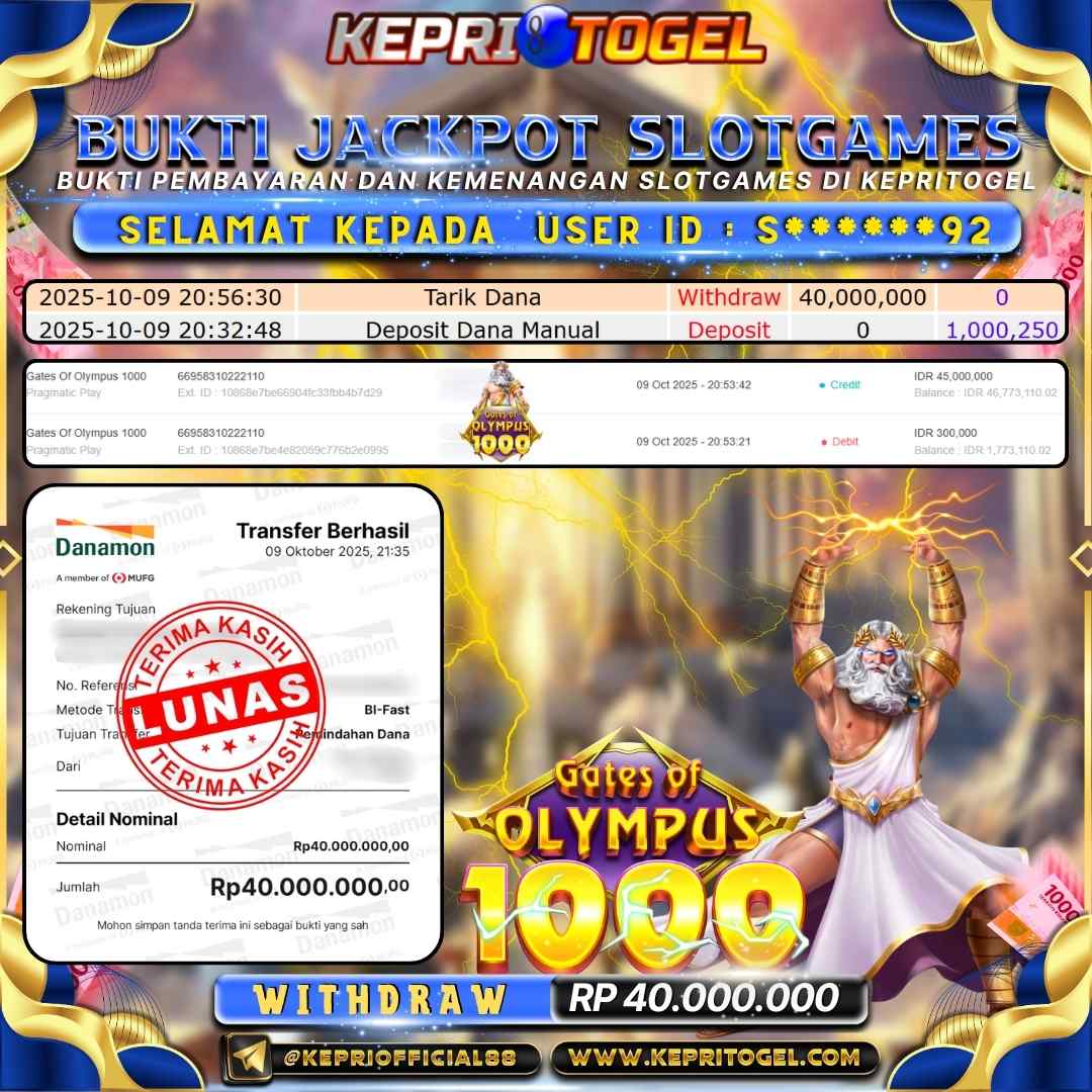 Jackpot Slot Gates Of Olympus 1000 Rp40,000,000