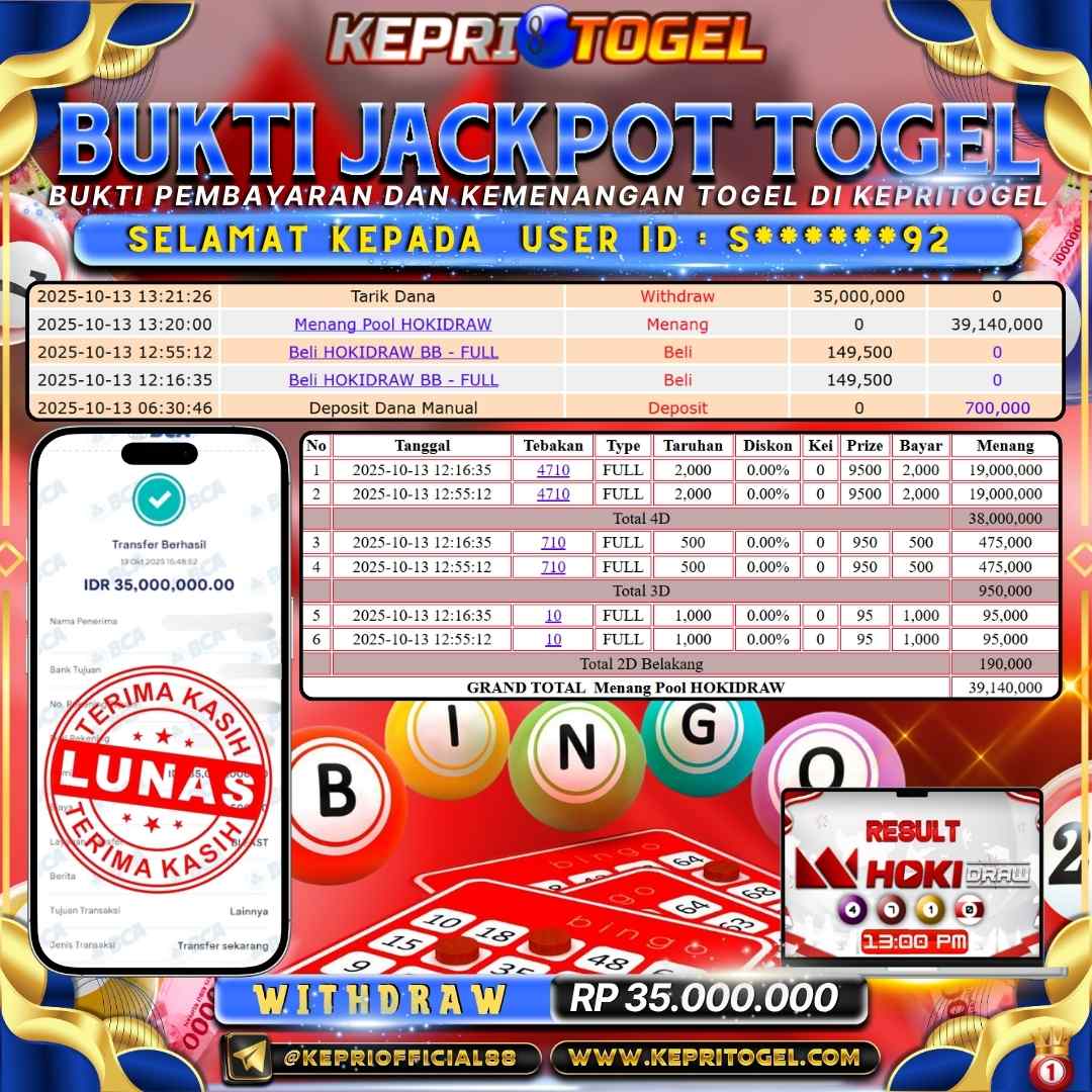 Kepritogel Jackpot Togel Hoki Draw Rp35,000,000