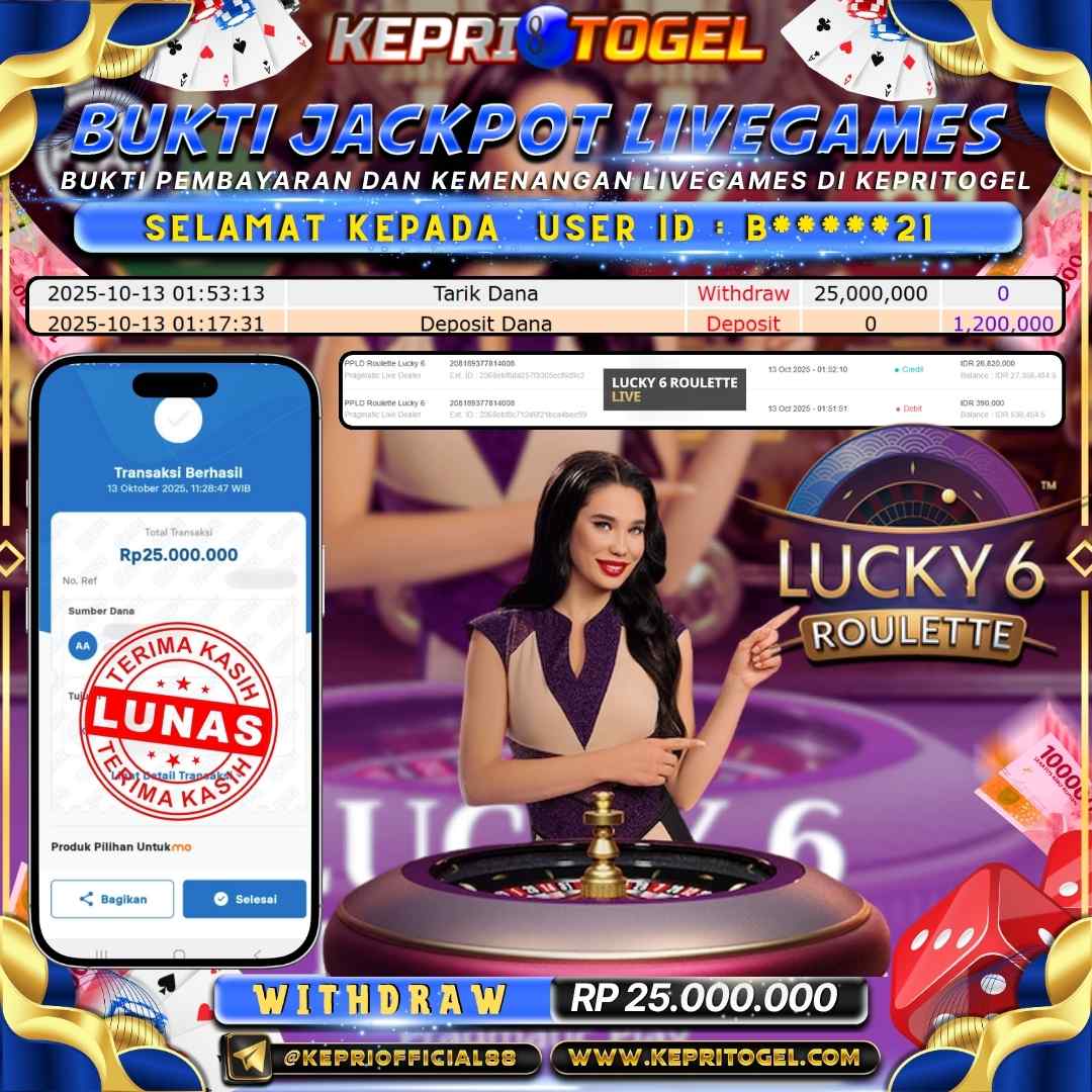 Kepritogel Jackpot Live Game Lucky 6 Roulette Rp25,000,000