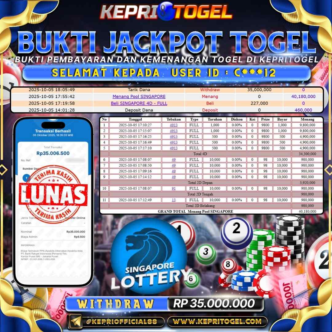 Kepritogel Jackpot Togel Singapore Rp35,000,000