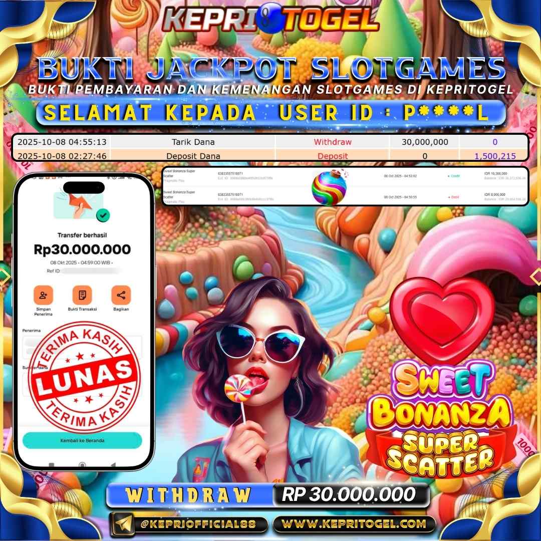 Kepritogel Jackpot Slot Sweet Bonanza Super Scater Rp30,000,000