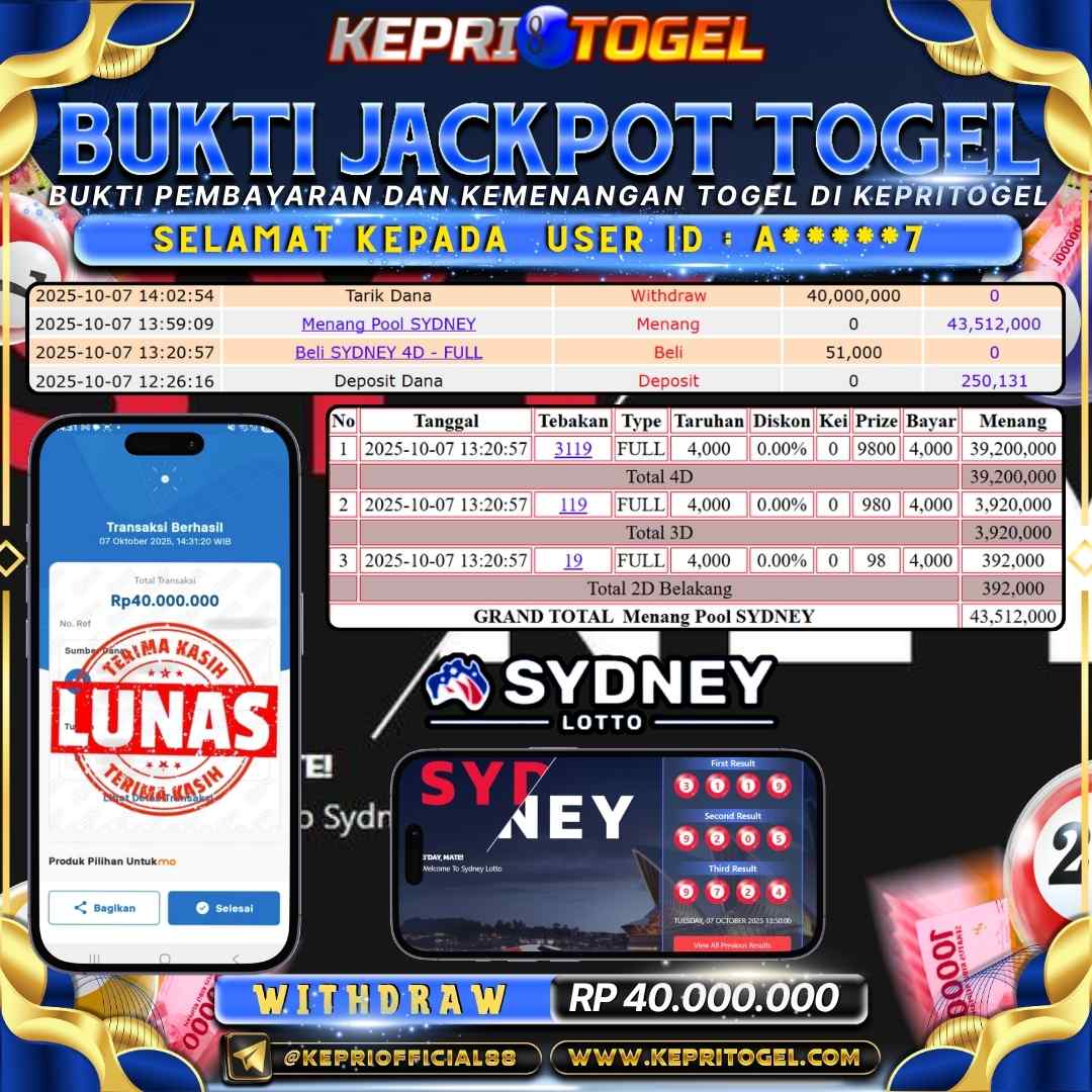 Kepritogel Jackpot Togel Sydney Rp40,000,000