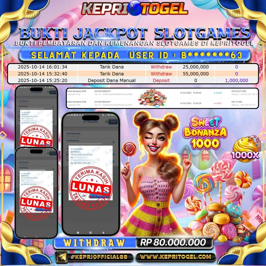 Kepritogel Jackpot Slot Sweet Bonanza 1000 Rp80,000,000