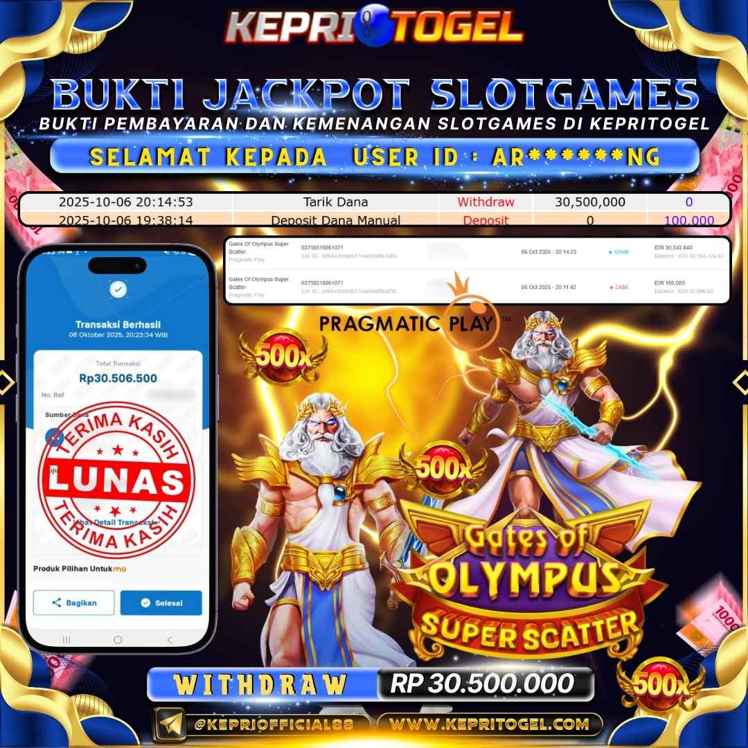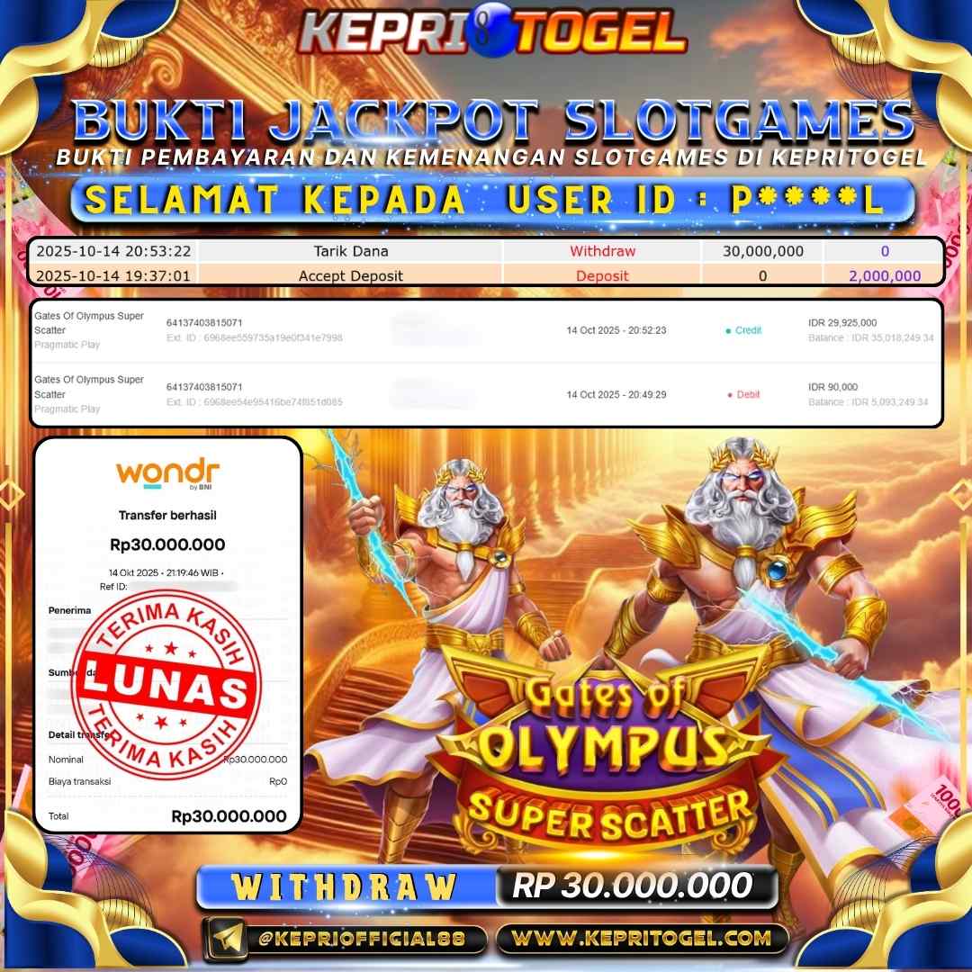 Kepritogel Jackpot Slot Gates Of Olympus Super Scater Rp30,000,000