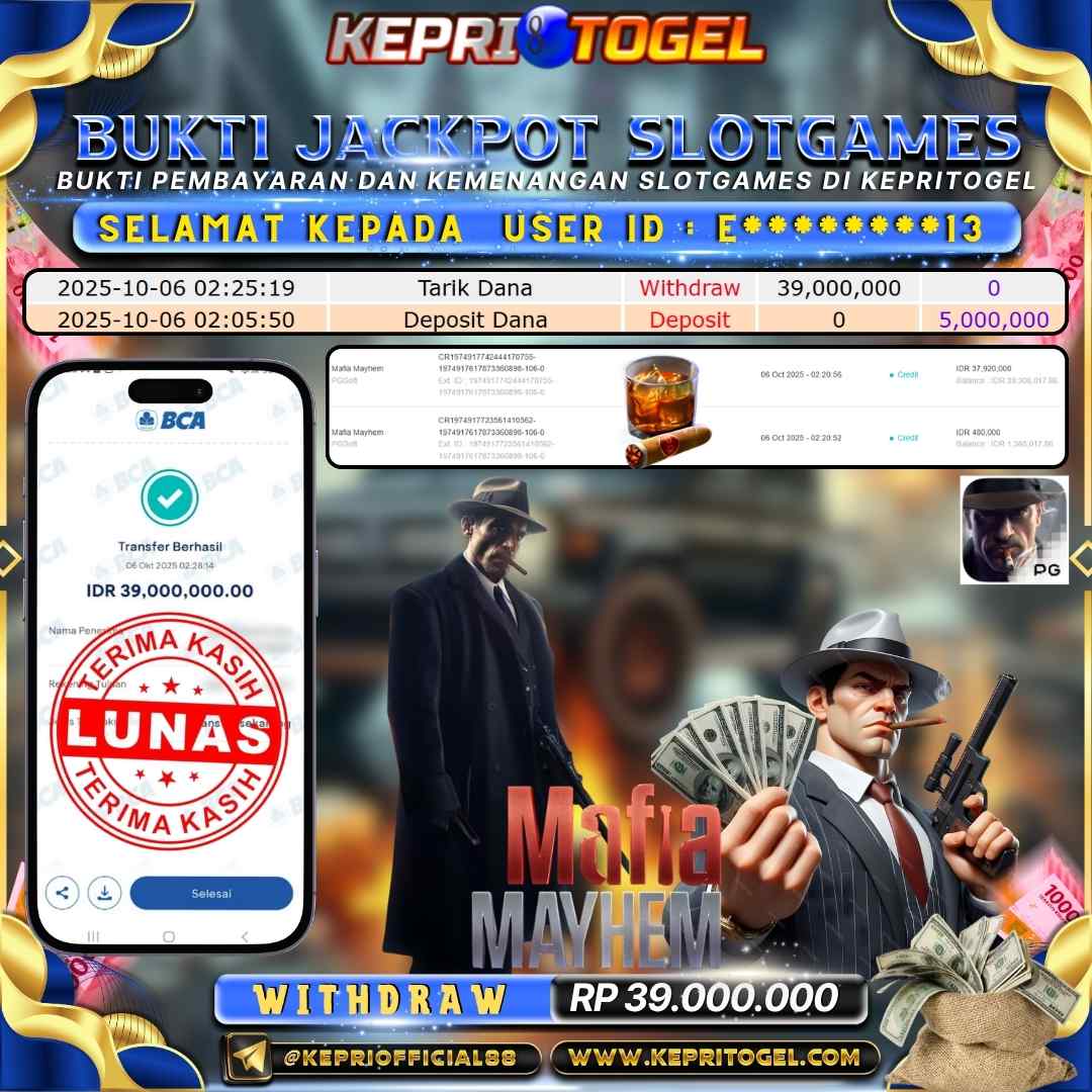 Kepritogel Jackpot Slot Mafia Mayhem Rp39,000,000