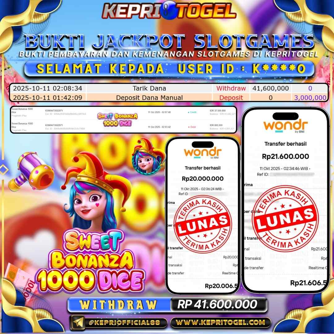 Kepritogel Jackpot Slot Sweet Bonanza 1000 Dice Rp41,600,000
