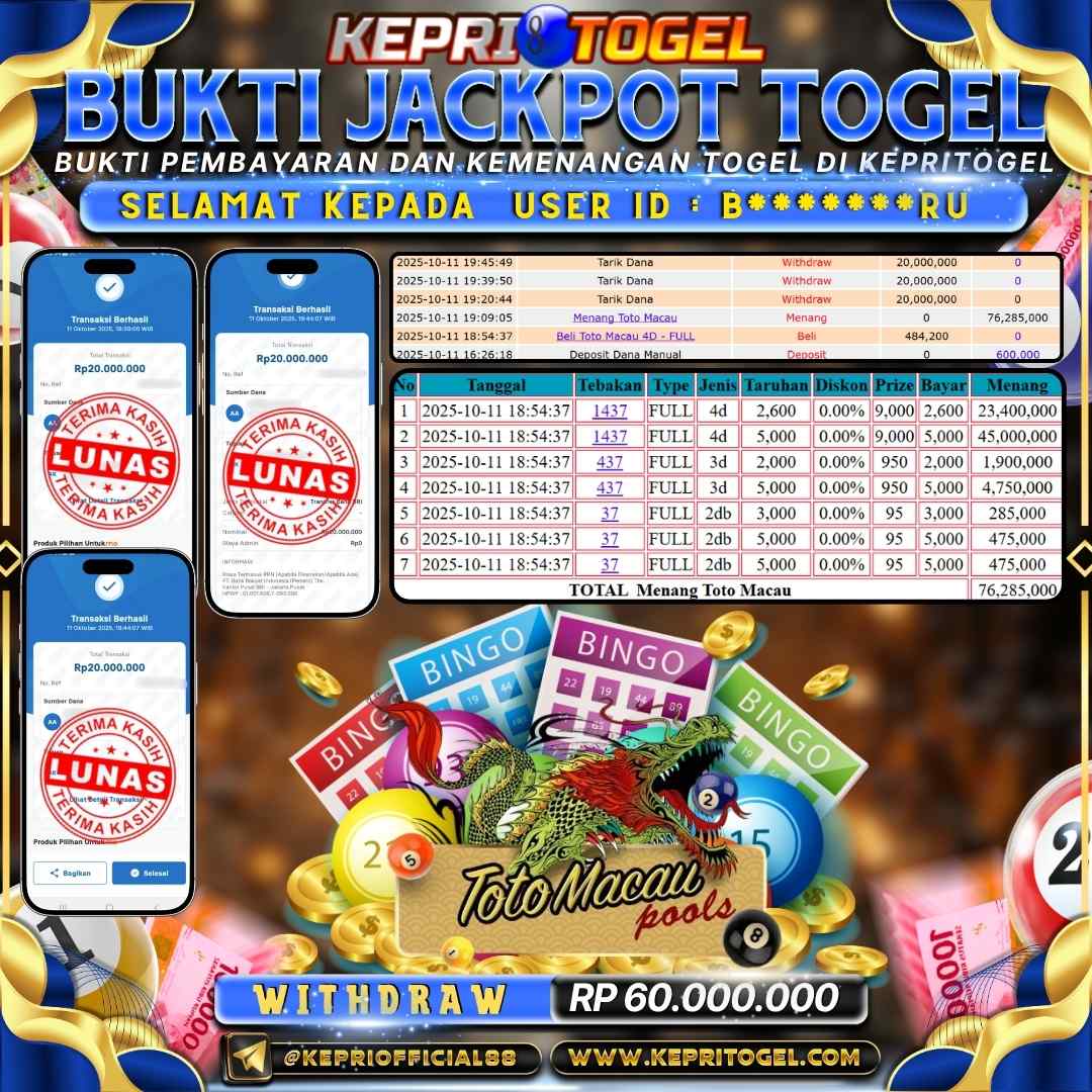 Kepritogel Jackpot Togel Toto Macau Pools Rp60,000,000