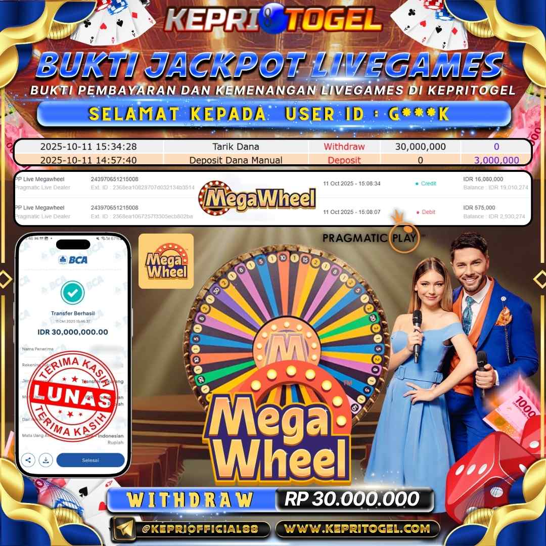 Kepritogel Jackpot Live Game Mega Wheel Rp30,000,000