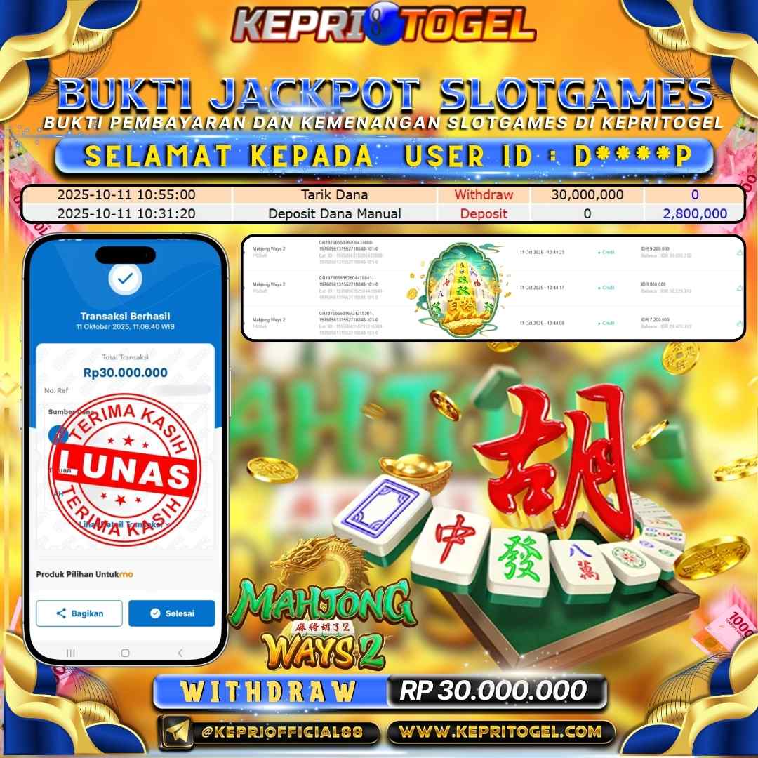 Kepritogel Jackpot Slot Mahjong Ways 2 Rp30,000,000