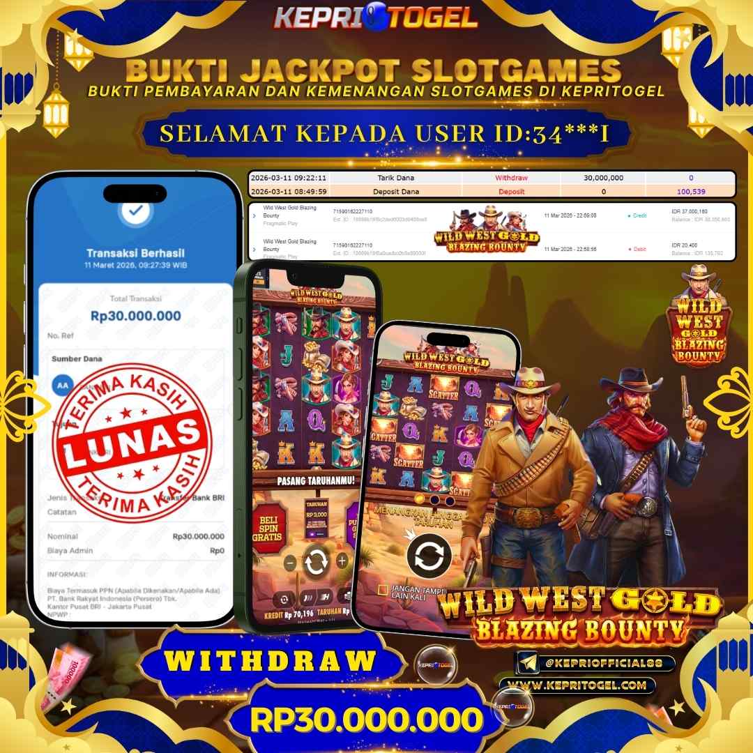 Selamat kepada UserId 34***I telah berhasil mendapatkan kemenangan jackpot pada permainan Slot Wild West Gold Blazing Bounty Kepritogel sebesar Rp30,000,000,- . Kepritogel situs terpercaya sejak dulu hingga saat ini , Untuk kemenangan berapapun pasti akan kami bayarkan . Jangan ragu bermain di Kepri Togel . Kami pihak Kepritogel Menyampaikan terima kasih kepada seluruh member Kepri Togel yang telah Percaya dan setia Bersama kami bermain di Kepritogel hingga saat ini.