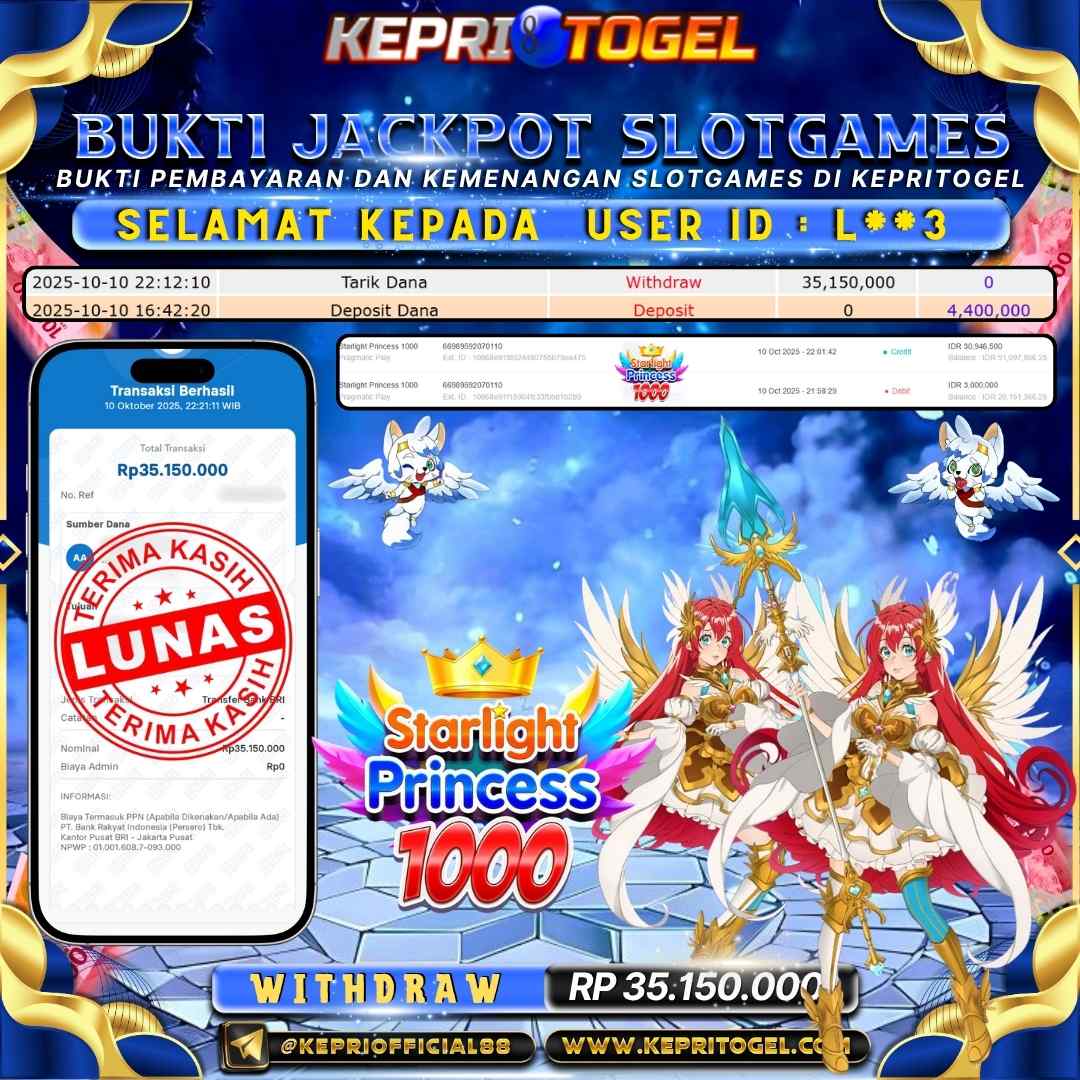 Kepritogel Jackpot Slot Starlight Princess 1000 Rp35,150,000