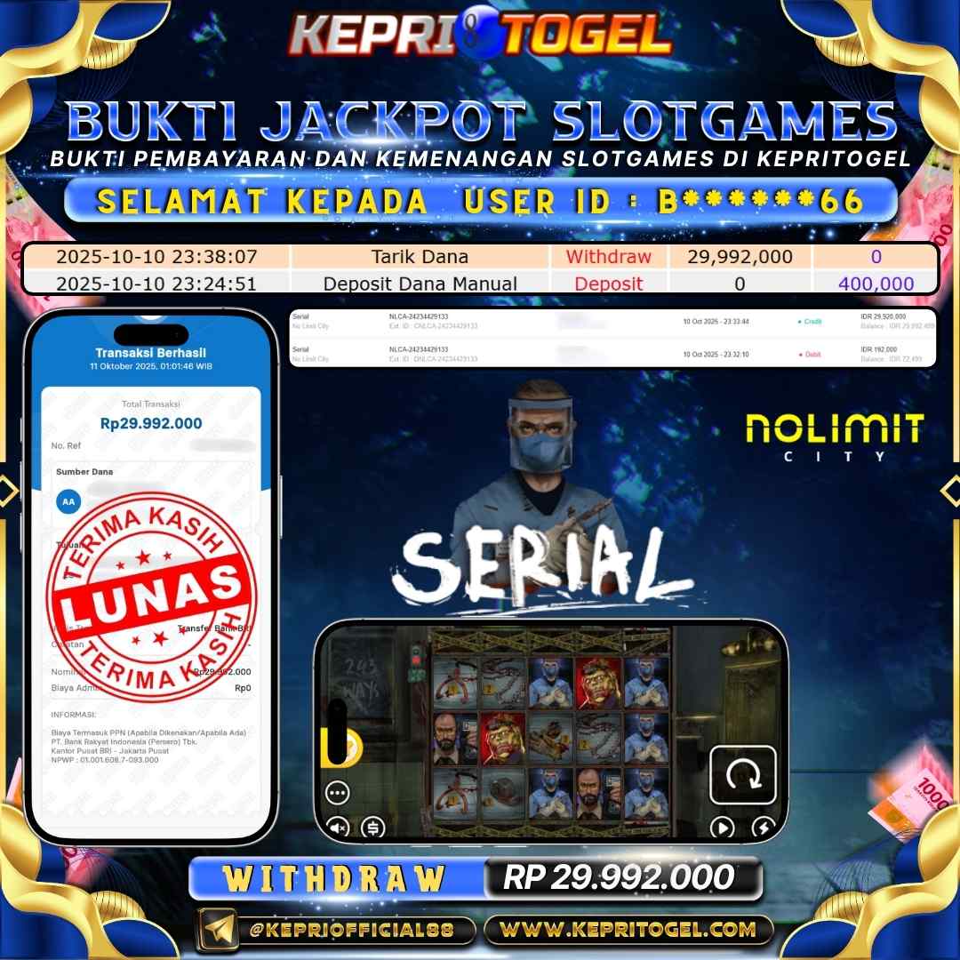 Kepritogel Jackpot Slot Serial Rp29,992,000