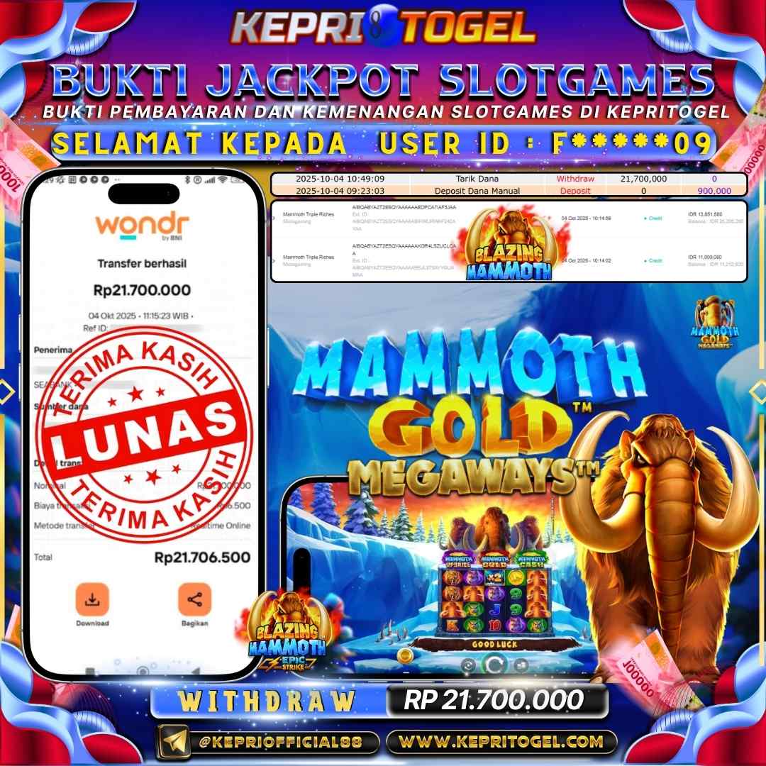Kepritogel Jackpot Slot Mammoth Triple Riches Rp21,700,000