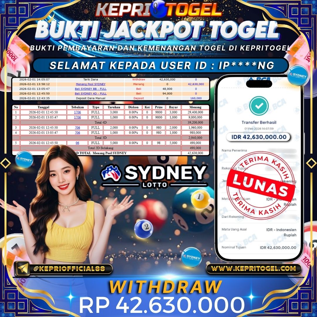Kepritogel Jackpot Togel SYDNEY Rp42,630,000
