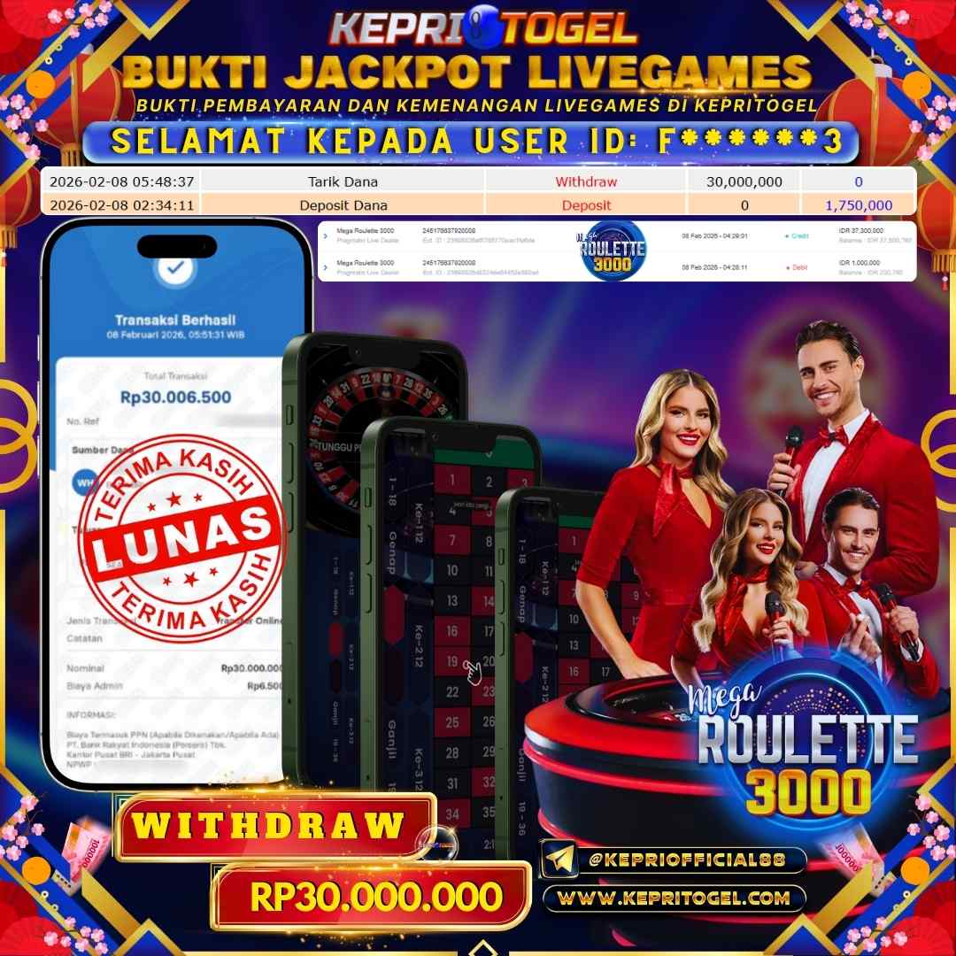 Kepritogel Jackpot Live Game Mega Roullete 3000 Rp30,000,000