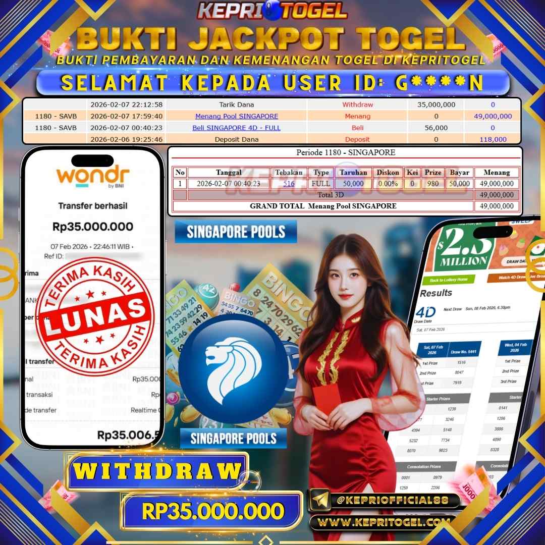 Kepritogel Jackpot Togel Singapore Pools Rp35,000,000