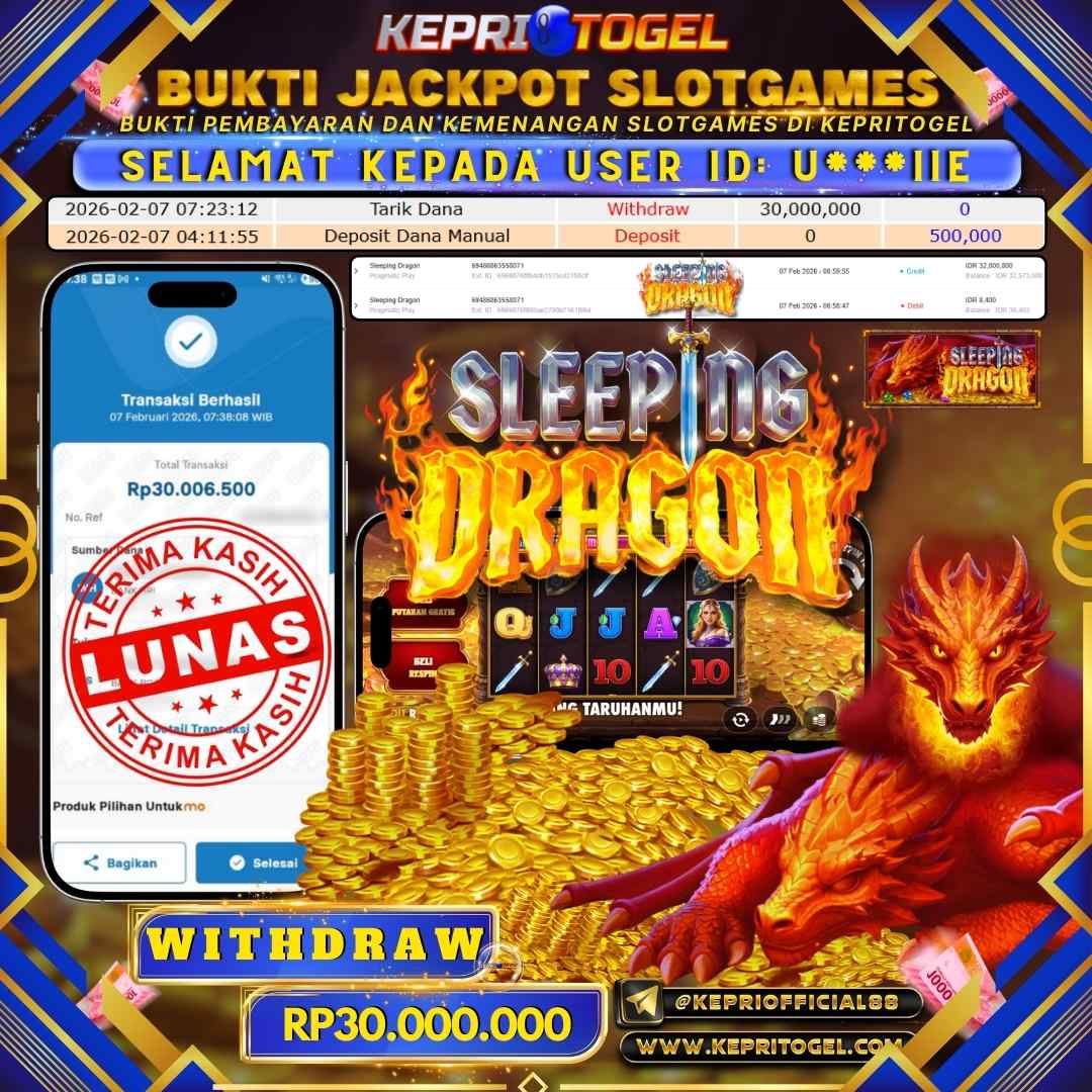 Kepritogel Jackpot Slot Sleeping Dragon Rp30,000,000