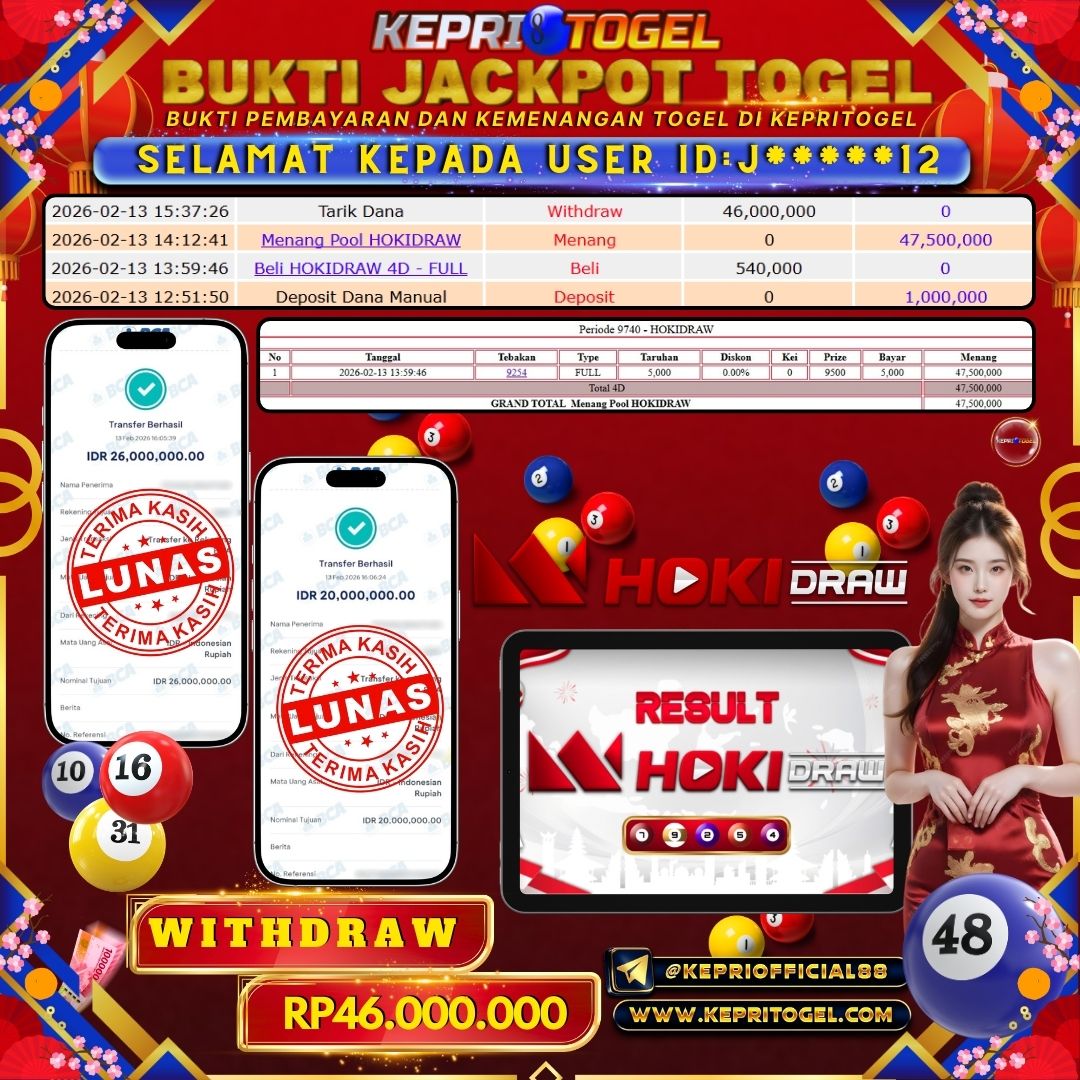 Kepritogel Jackpot Togel HOKIDRAW Rp46,000,000