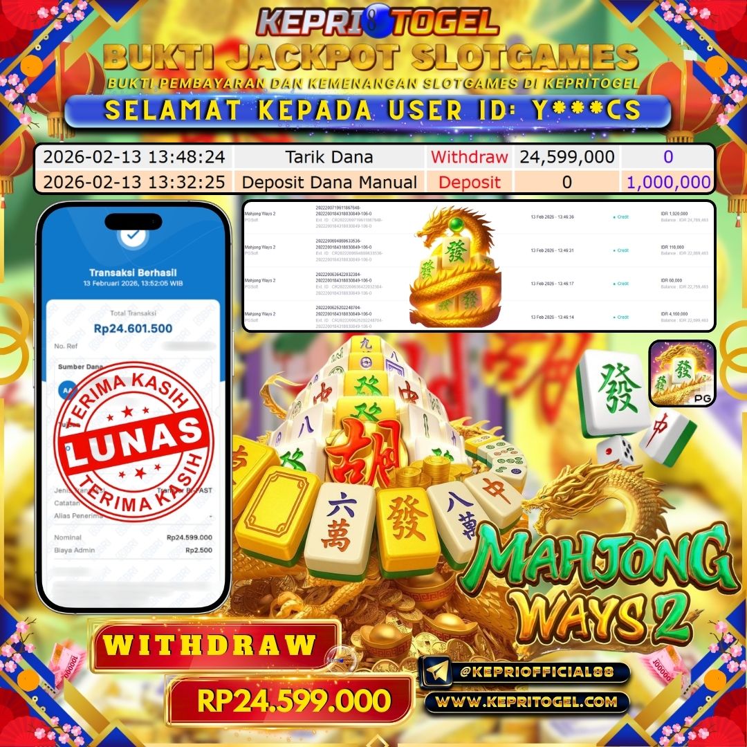 Selamat kepada UserId Y***CS telah berhasil mendapatkan kemenangan jackpot pada permainan slot Mahjong Ways 2 Kepritogel sebesar Rp24,599,000,- . Kepritogel situs terpercaya sejak dulu hingga saat ini , Untuk kemenangan berapapun pasti akan kami bayarkan . Jangan ragu bermain di Kepri Togel . Kami pihak Kepritogel Menyampaikan terima kasih kepada seluruh member Kepri Togel yang telah Percaya dan setia Bersama kami bermain di Kepritogel hingga saat ini.