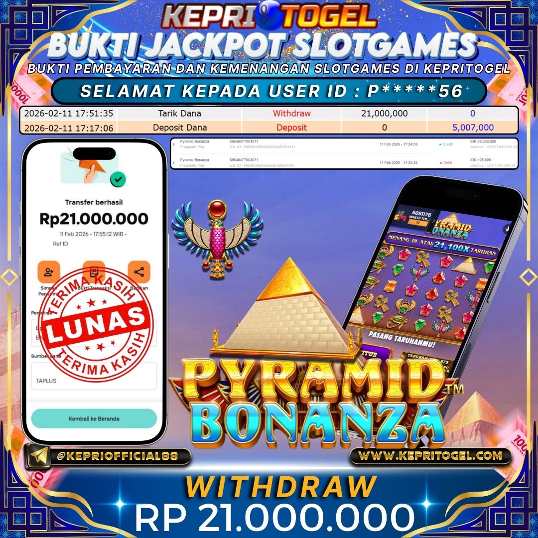Selamat kepada UserId P*****56 telah berhasil mendapatkan kemenangan jackpot pada permainan Slot Pyramid Bonanza Kepritogel sebesar Rp21,000,000,- . Kepritogel situs terpercaya sejak dulu hingga saat ini , Untuk kemenangan berapapun pasti akan kami bayarkan . Jangan ragu bermain di Kepri Togel . Kami pihak Kepritogel Menyampaikan terima kasih kepada seluruh member Kepri Togel yang telah Percaya dan setia Bersama kami bermain di Kepritogel hingga saat ini
